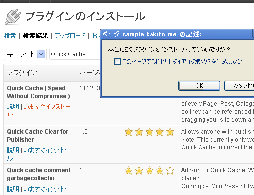 今回は「Quick Cache」というプラグインをインストールしてみます。