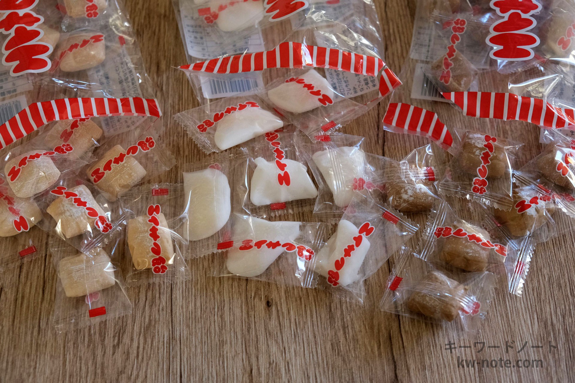 飴でよくありがちな香料・酸味料・乳化剤・着色料など添加物は一切入っておらず、水飴と砂糖と小麦粉だけ(太白味)と、非常にシンプルな材料で作られています。