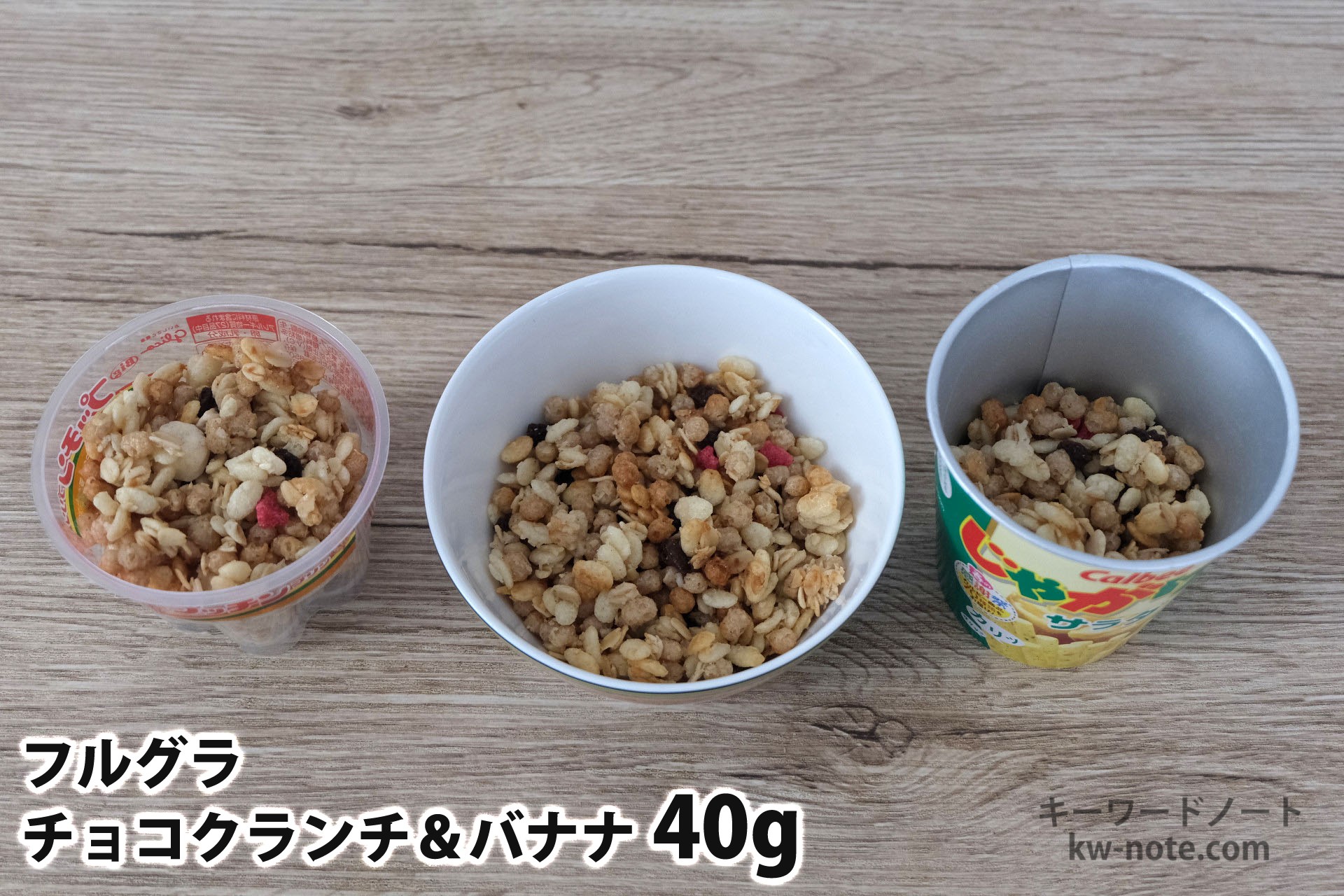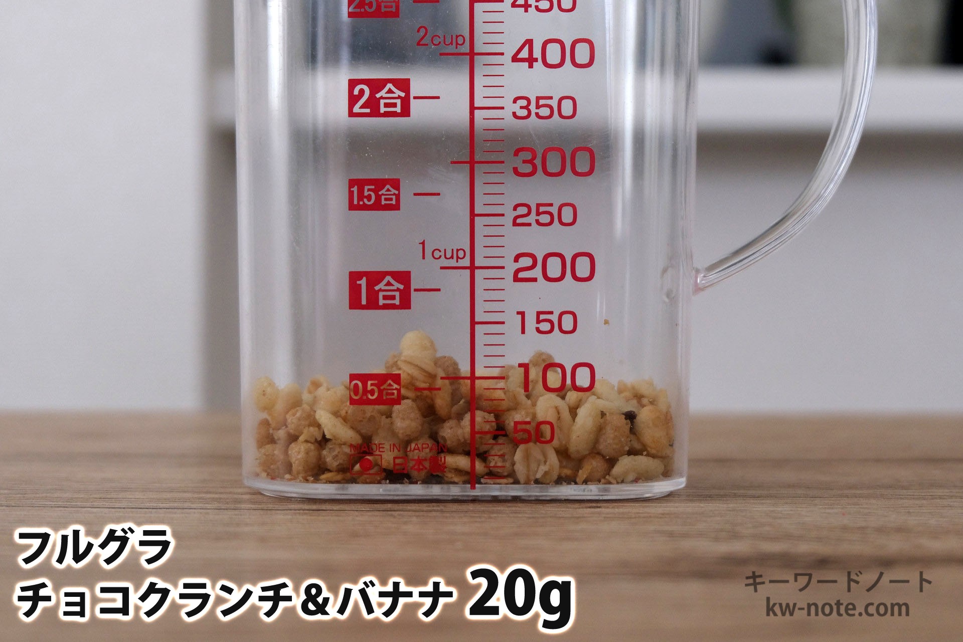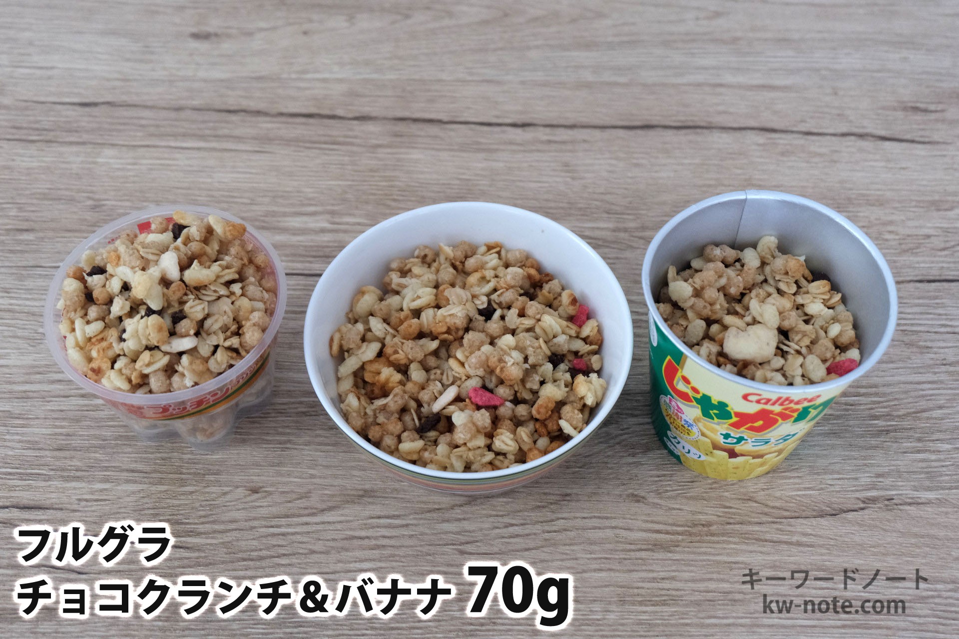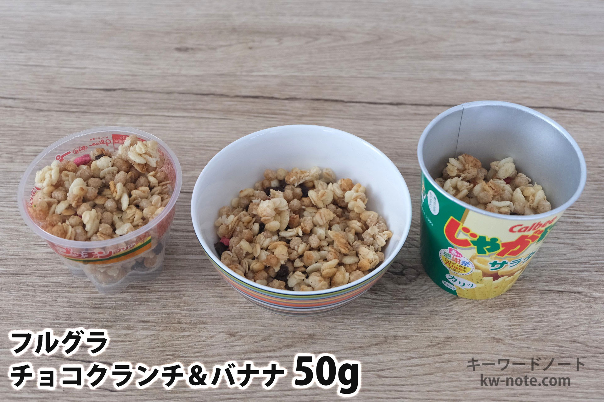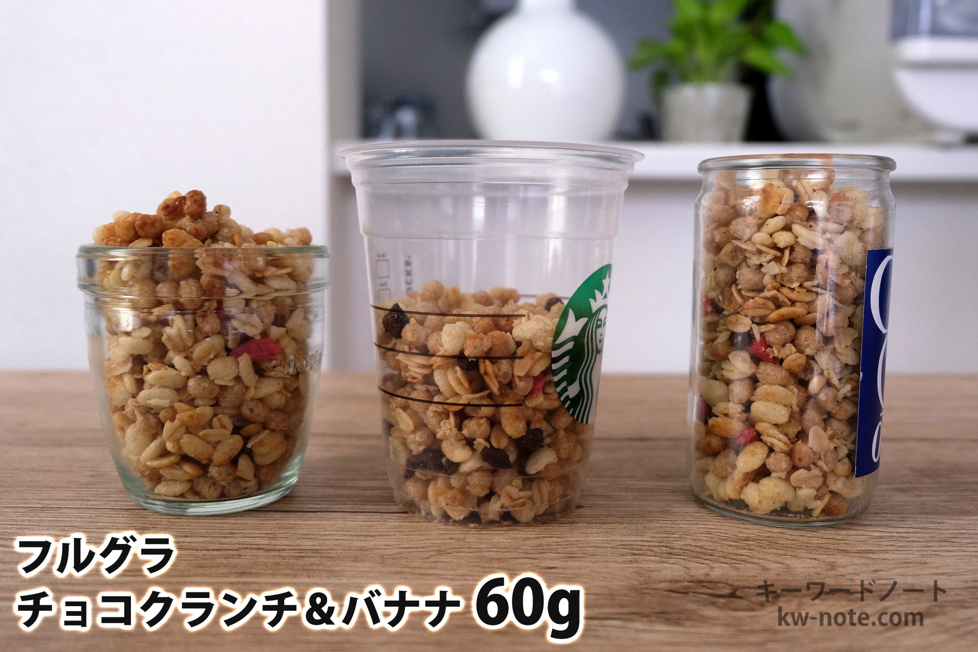 「フルグラ チョコクランチ&バナナ」以外の他のシリアルの量については以下のリンクからご覧いただけます。