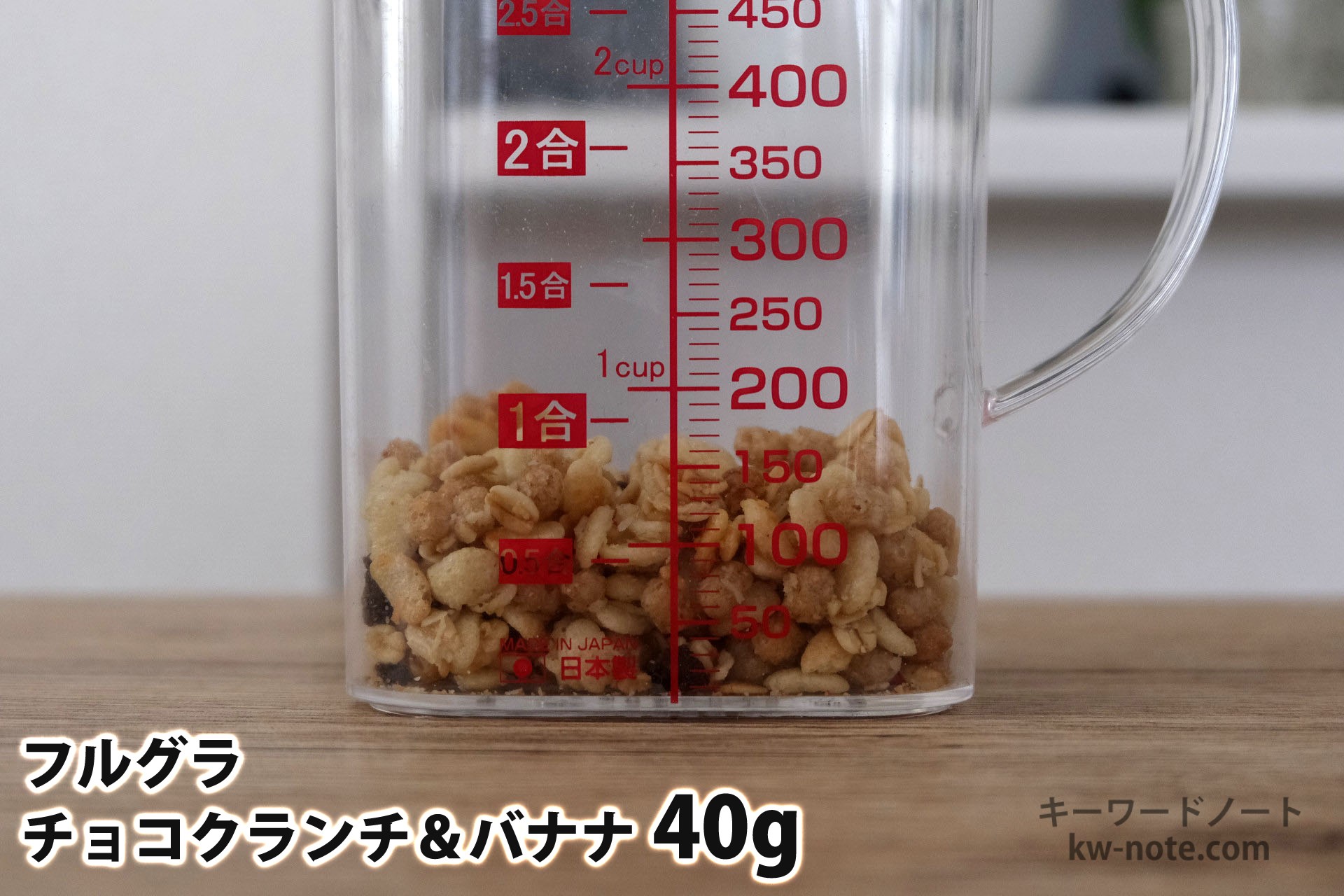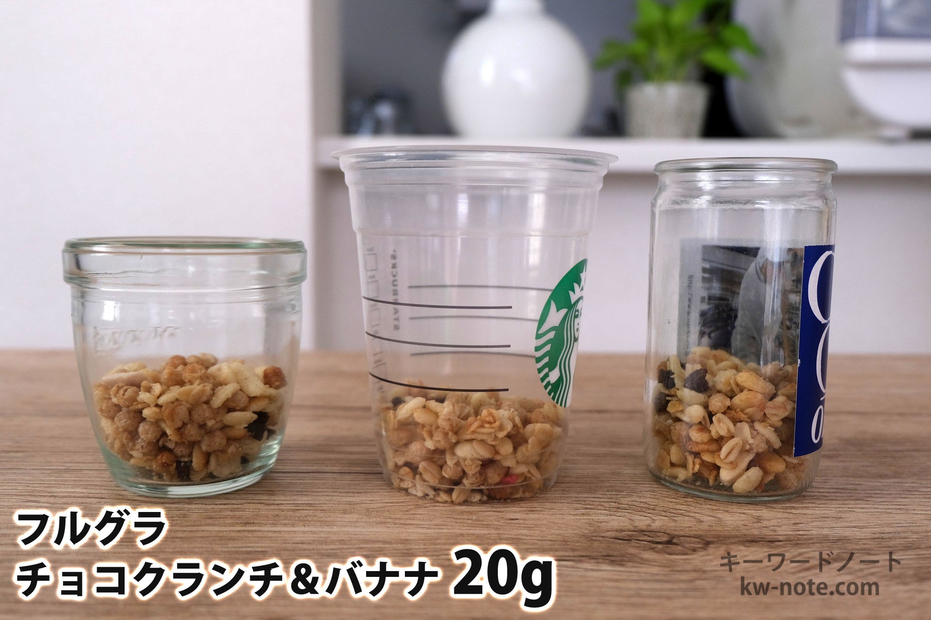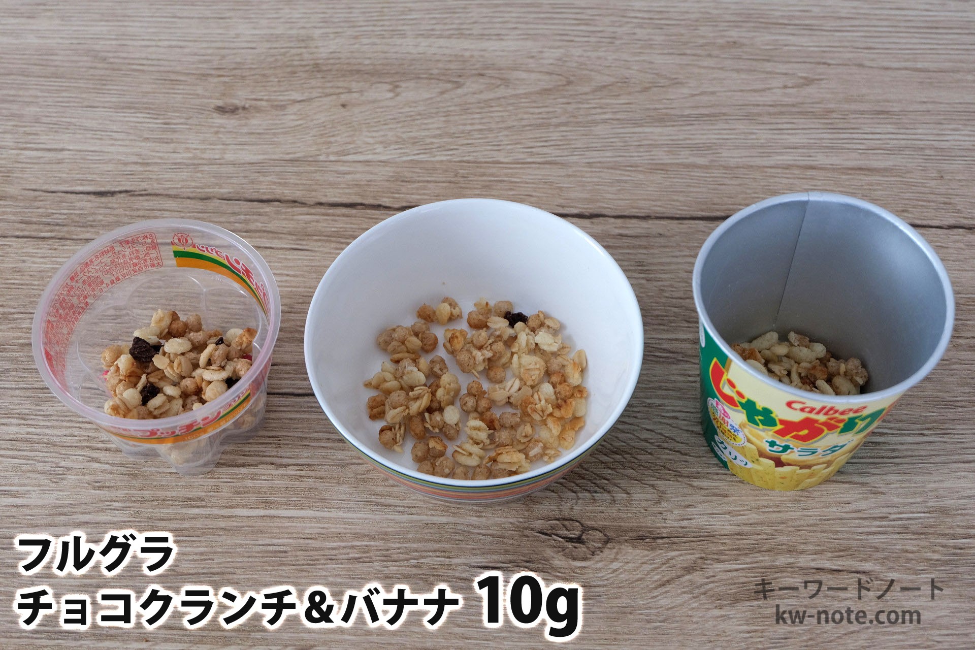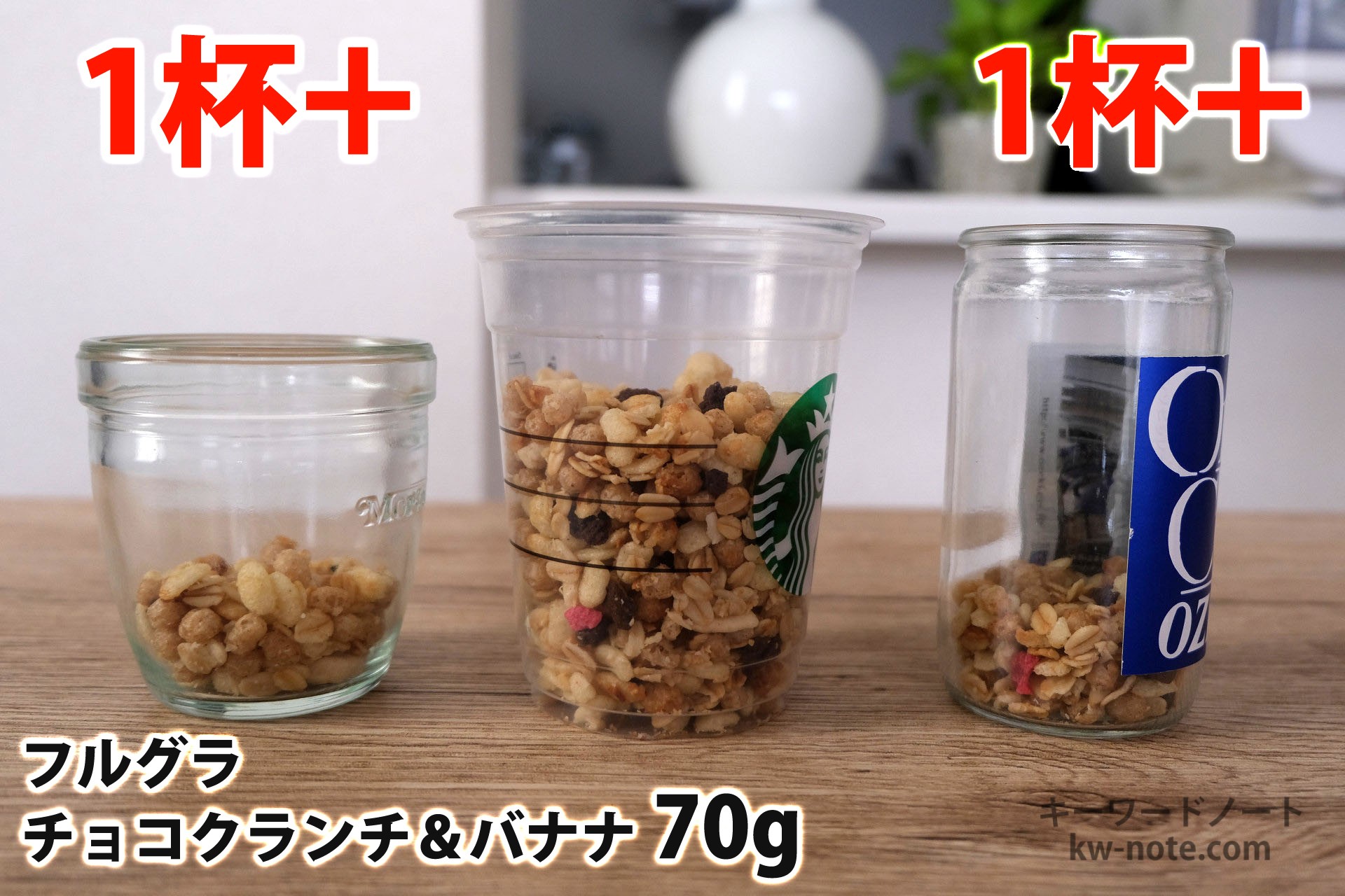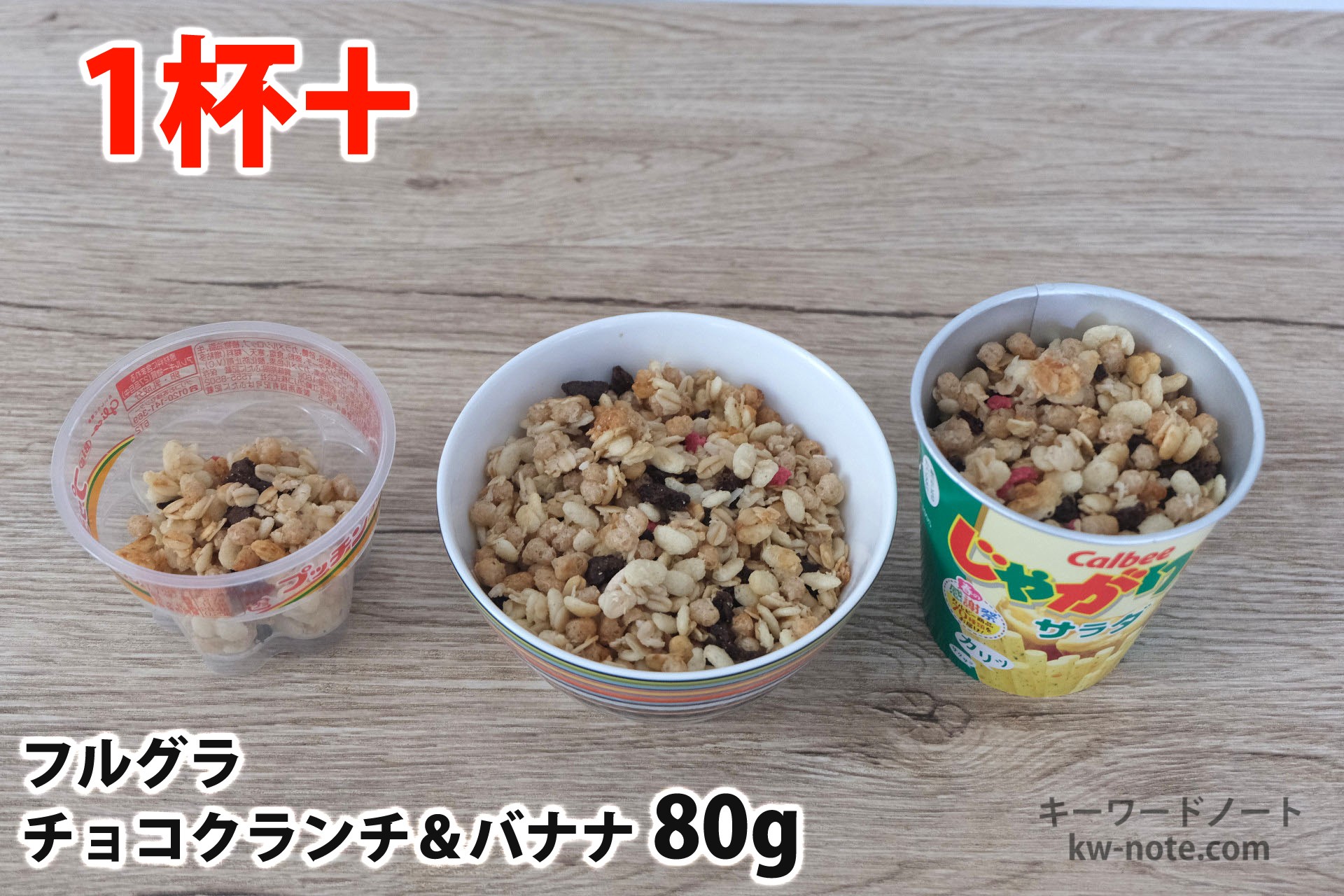 「フルグラ チョコクランチ&バナナ」以外の他のシリアルの量については以下のリンクからご覧いただけます。