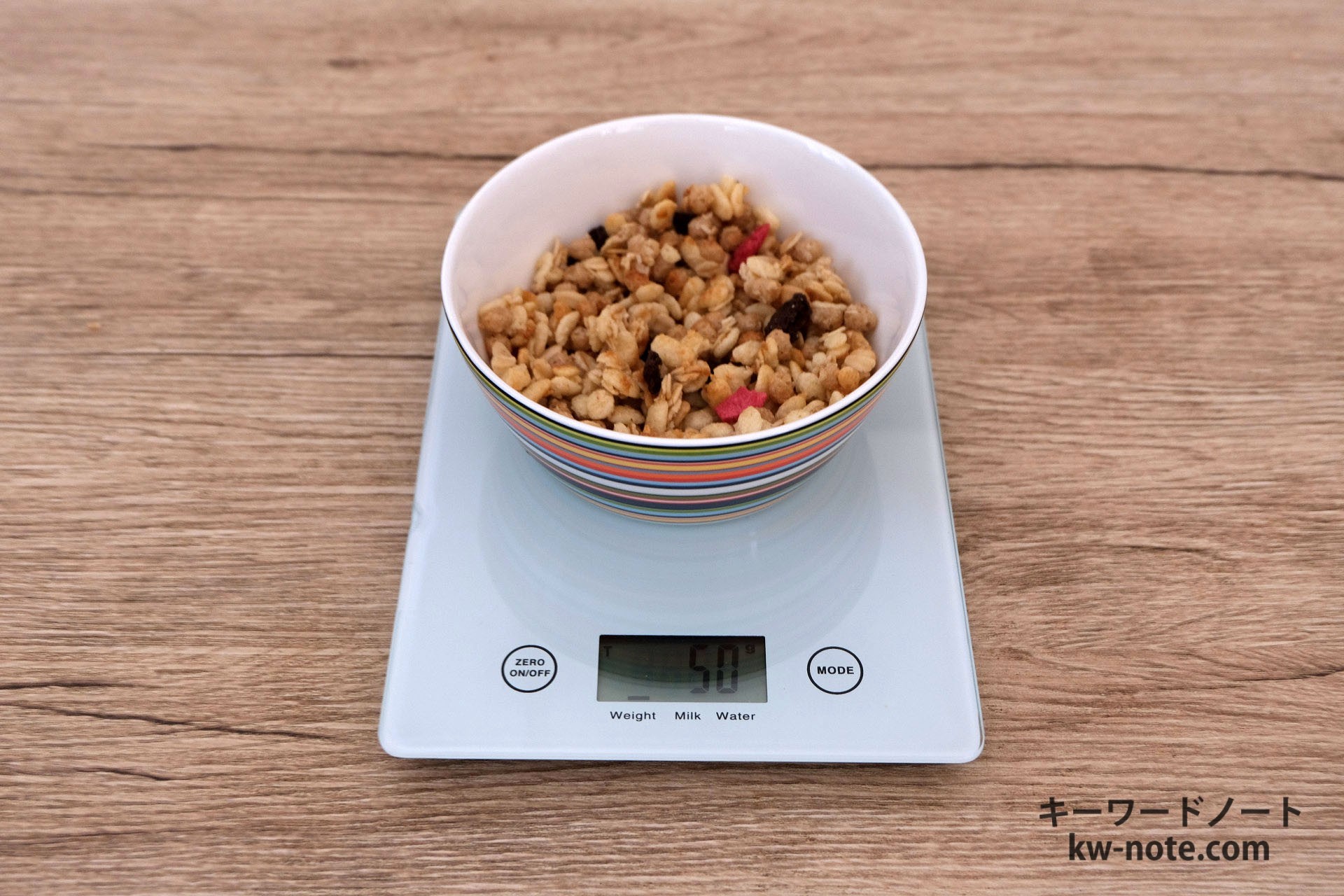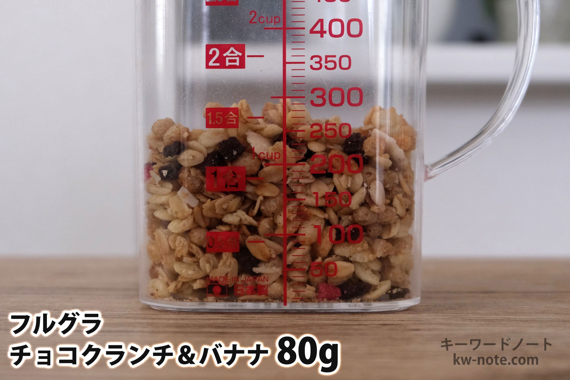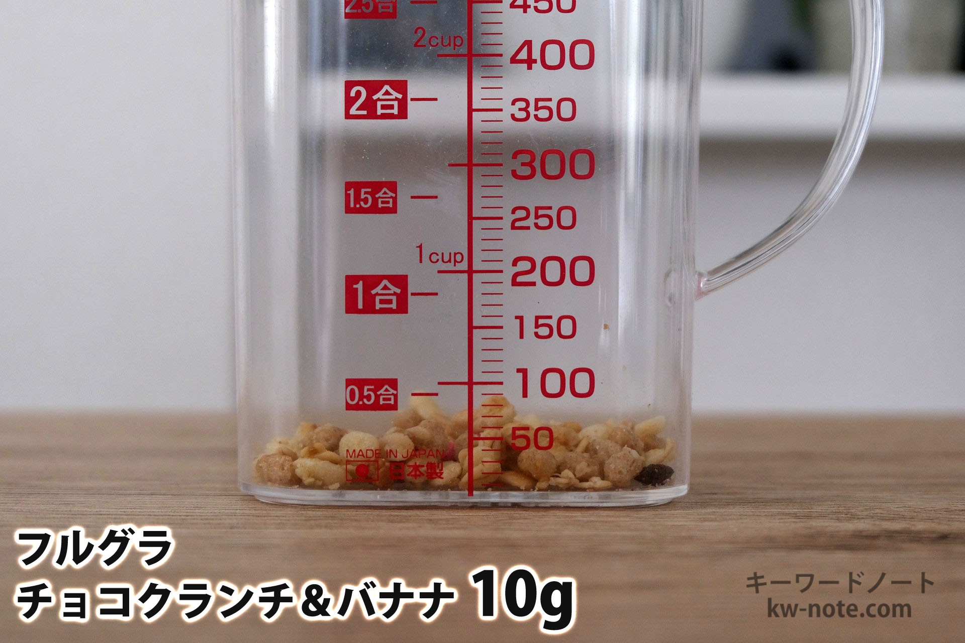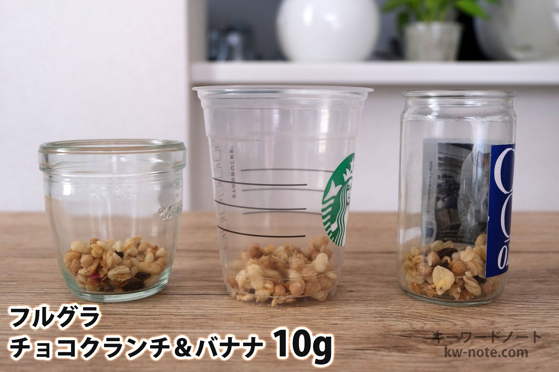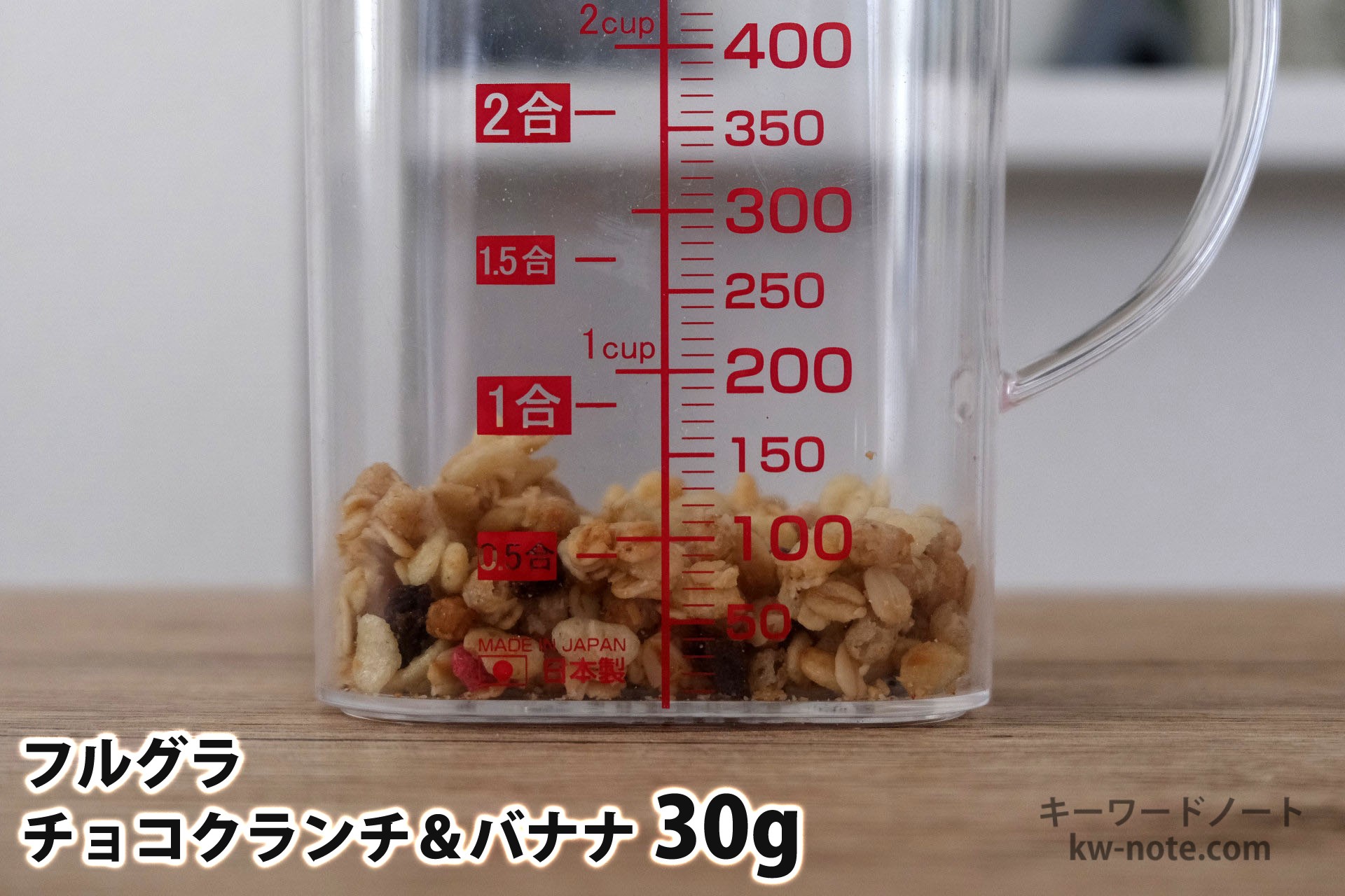 「フルグラ チョコクランチ&バナナ」以外の他のシリアルの量については以下のリンクからご覧いただけます。