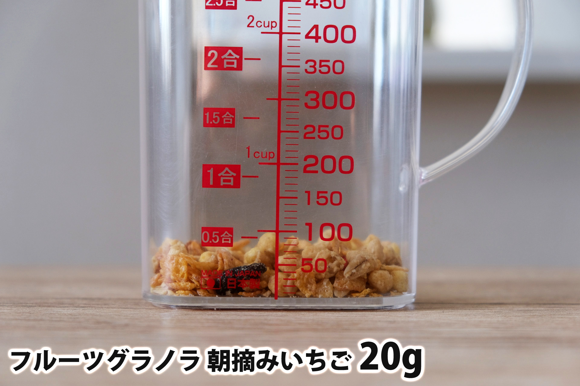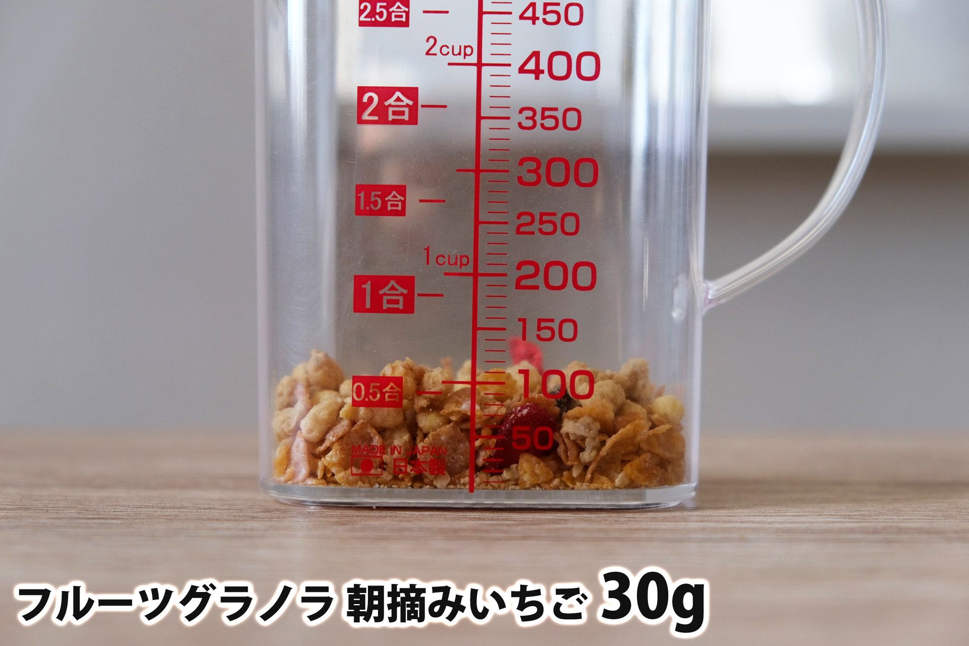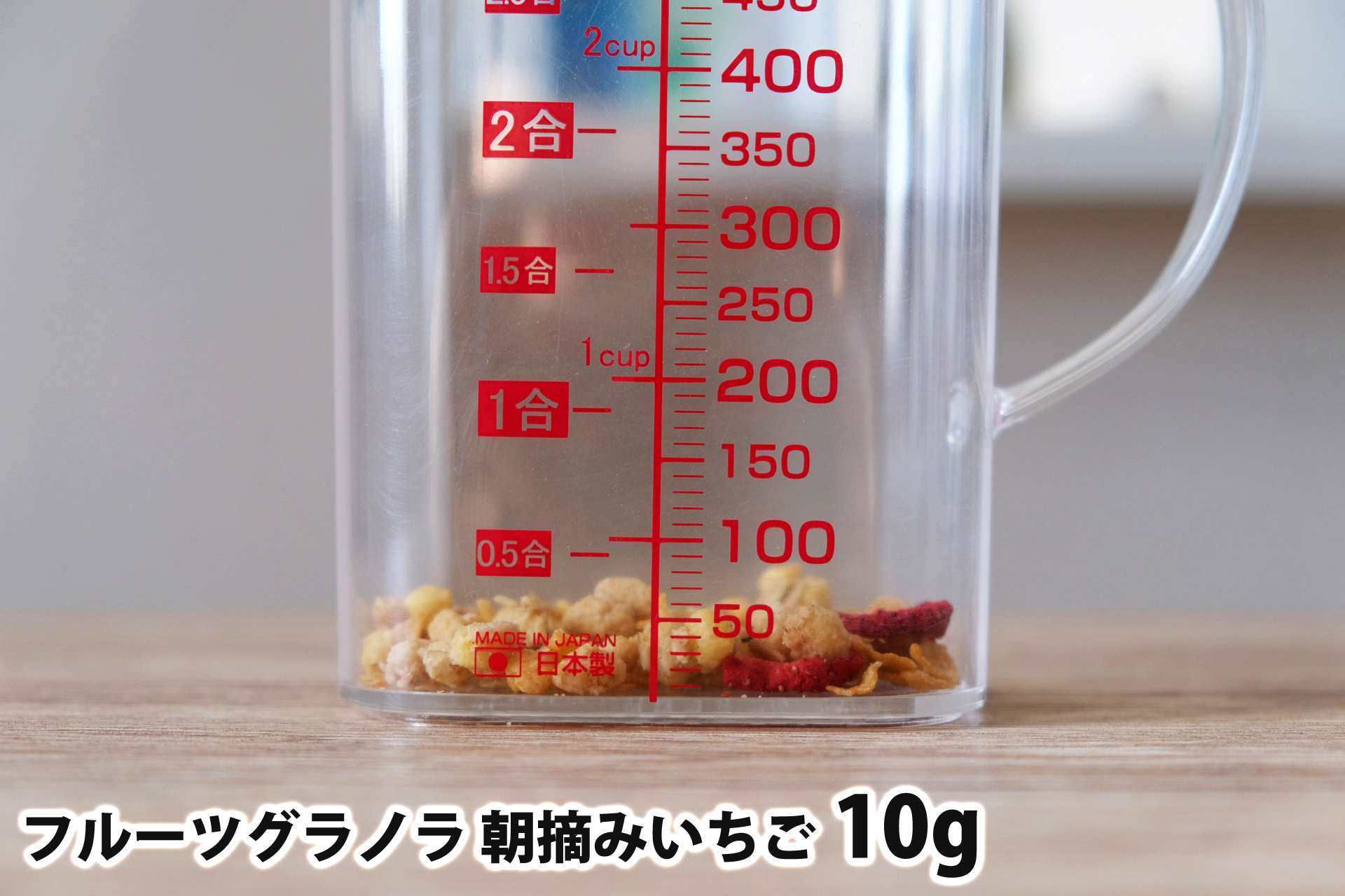 「フルーツグラノラ 朝摘みいちご」1食40gはどれ位の量?グラムごとの写真と栄養成分まとめ