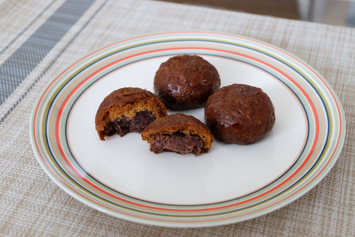 かりんとうのような色、ザクッとしは歯ごたえの生地の中には餡子(こしあん)がたっぷり入っています。