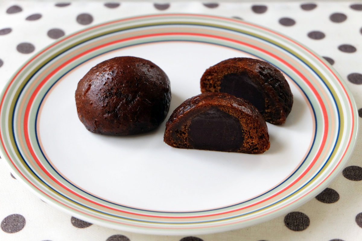 かりんとう饅頭は黒糖入りの生地に、餡(こしあん)を包み蒸し油で揚げた饅頭で、皮はかりんとうの様な色をしていて、ザクっとした食感と風味があります。
