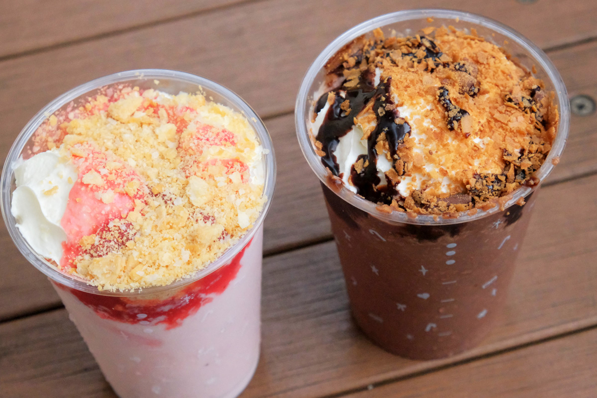 食感はシェイクと似ていますが、氷から撹拌して作られるためシェイクの滑らかさとプラス氷のガリガリっとした感触もあります。