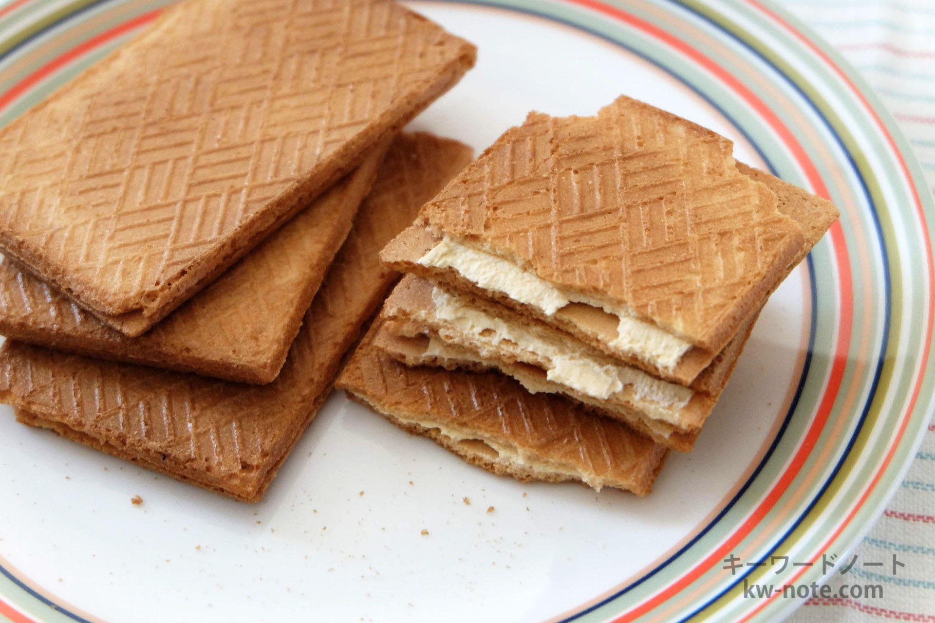 厚めのゴーフルのような、固くザクザクとした食感に、ピーナッツクリームがサンドされている、素朴で懐かしさのあるお菓子。
