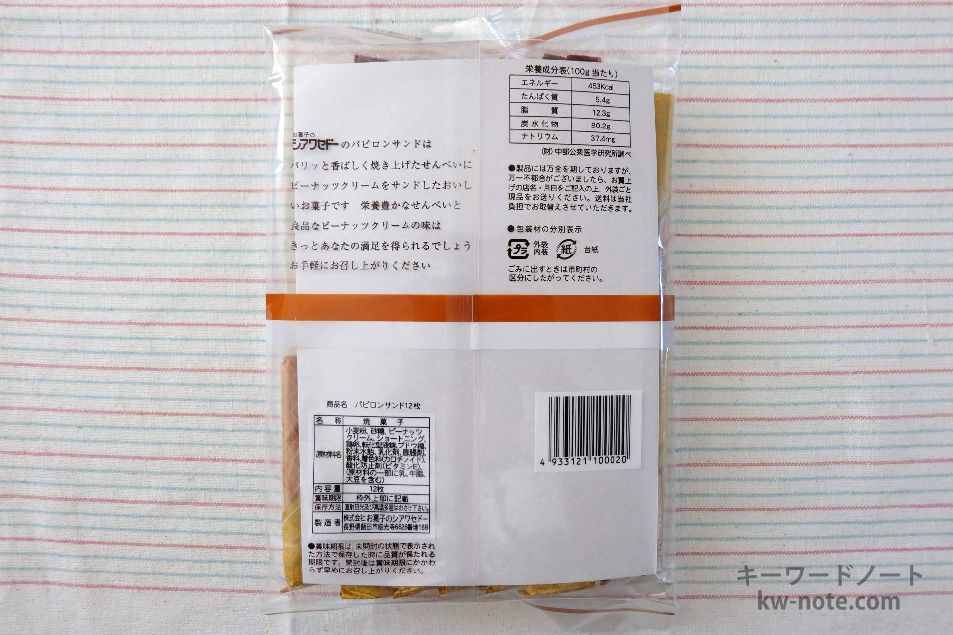 よくあるお菓子の中身はミルククリームですが、パピロンサンドはピーナツクリーム。