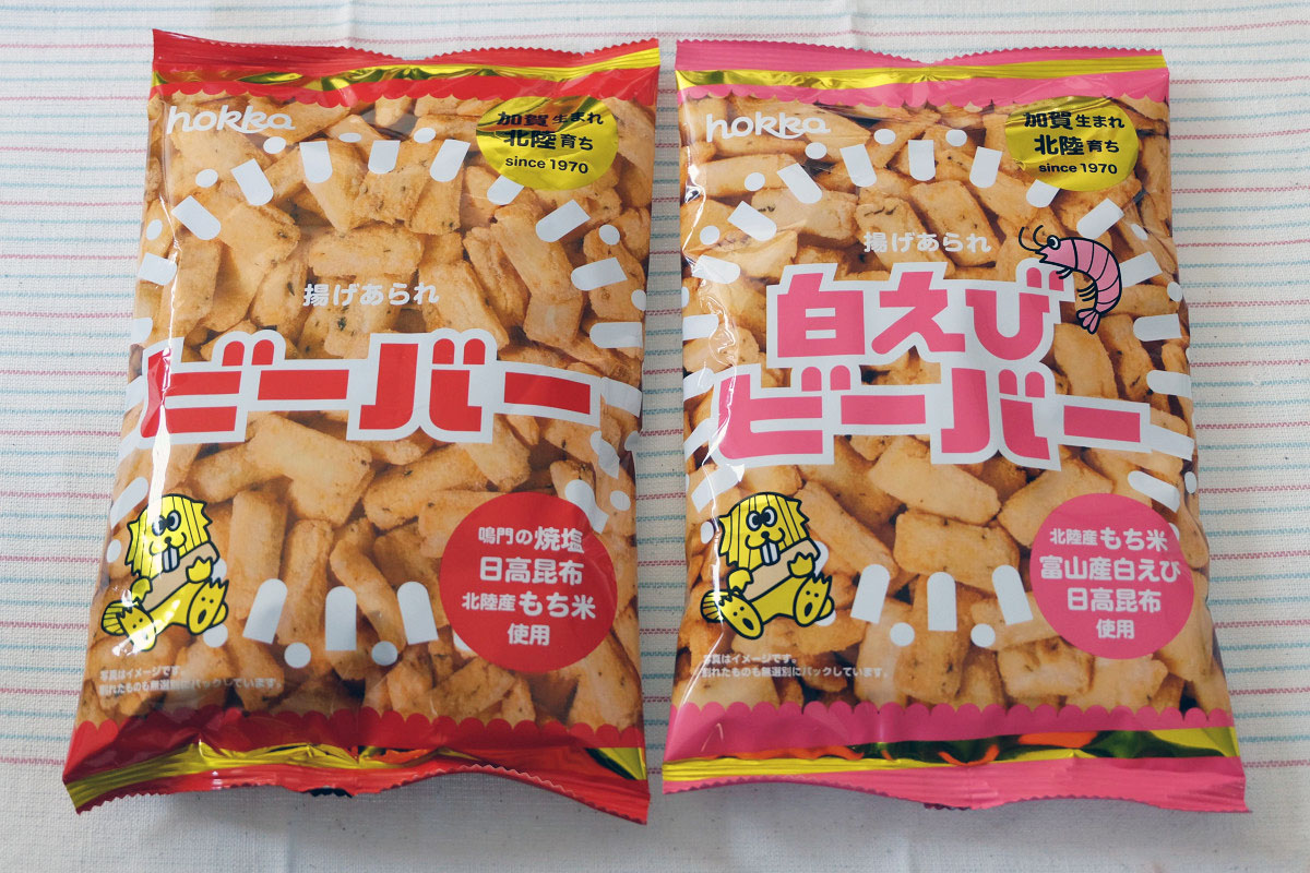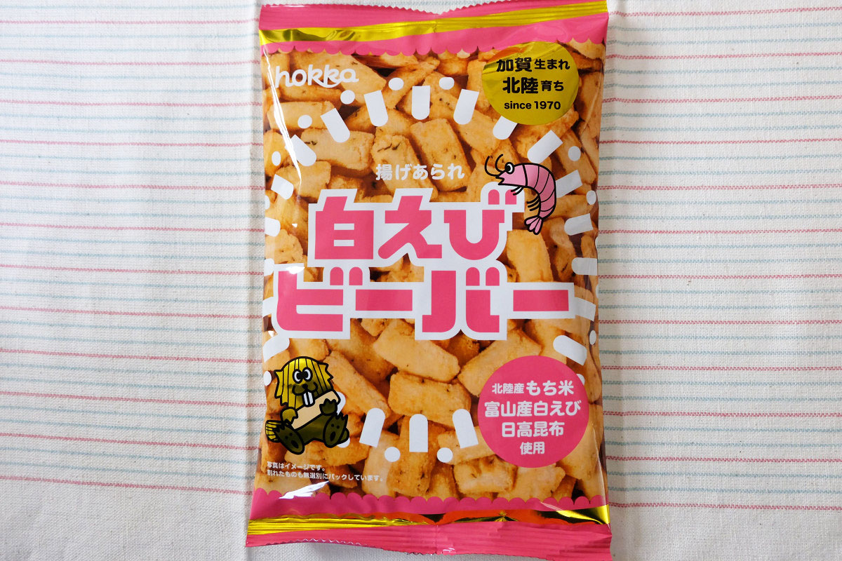 「白えびビーバー」は石川県金沢市に本社がある北陸製菓が販売している「ビーバー」という揚げ菓子(おかき)の白えび味で、他にも「ビーバー」「カレービーバー」「のどぐろビーバー」等のラインナップがあります。