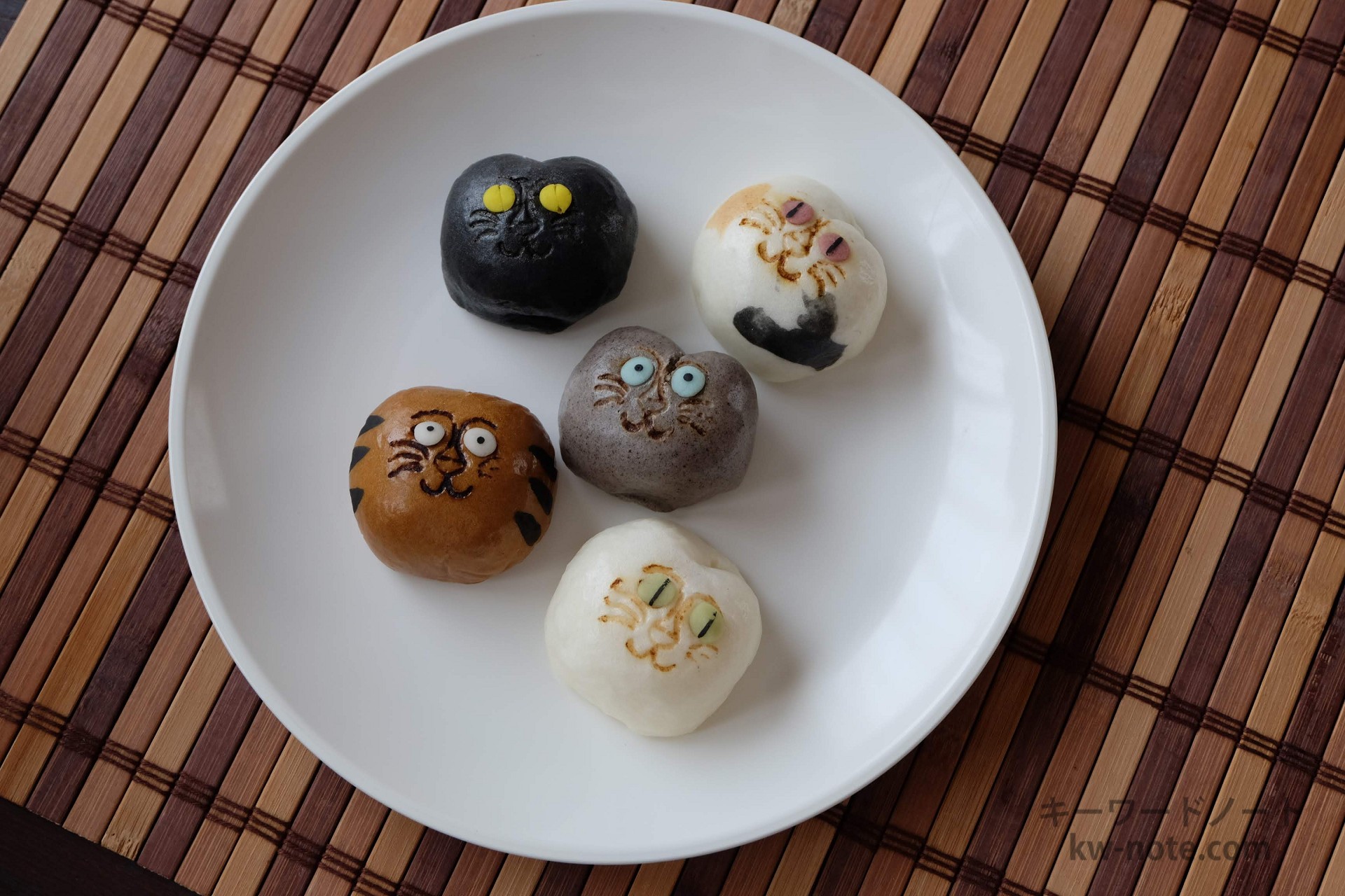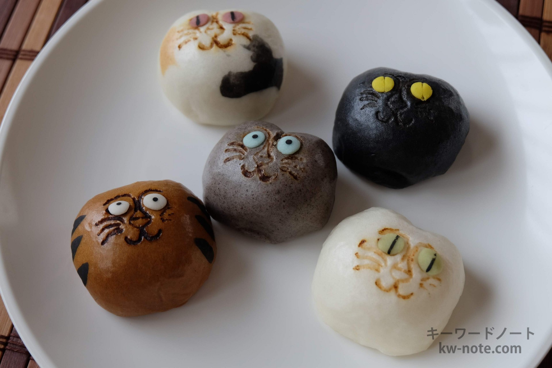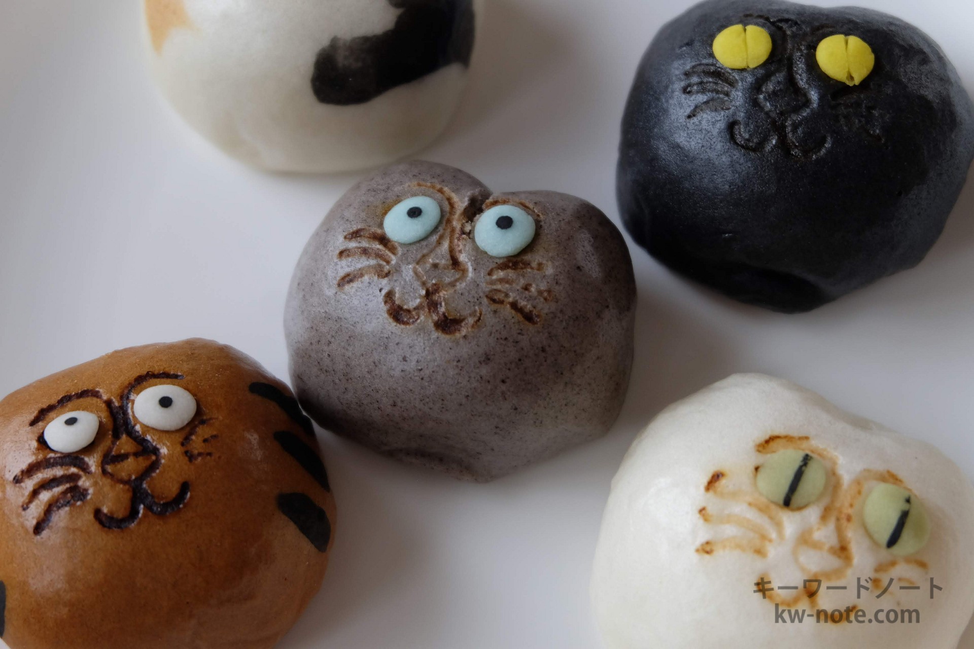 店舗近くの路地裏を行き来するノラ猫を見て思いついたといい、5種類の猫子は一匹一匹すべて手作業で作られています。