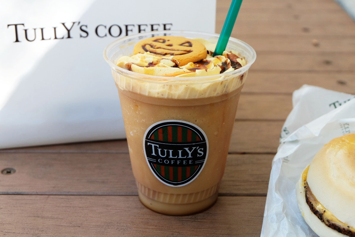 ミルクティーをベースにパンプキンの風味がプラスされ、上にはジャック・オー・ランタンのクッキーが乗っています。