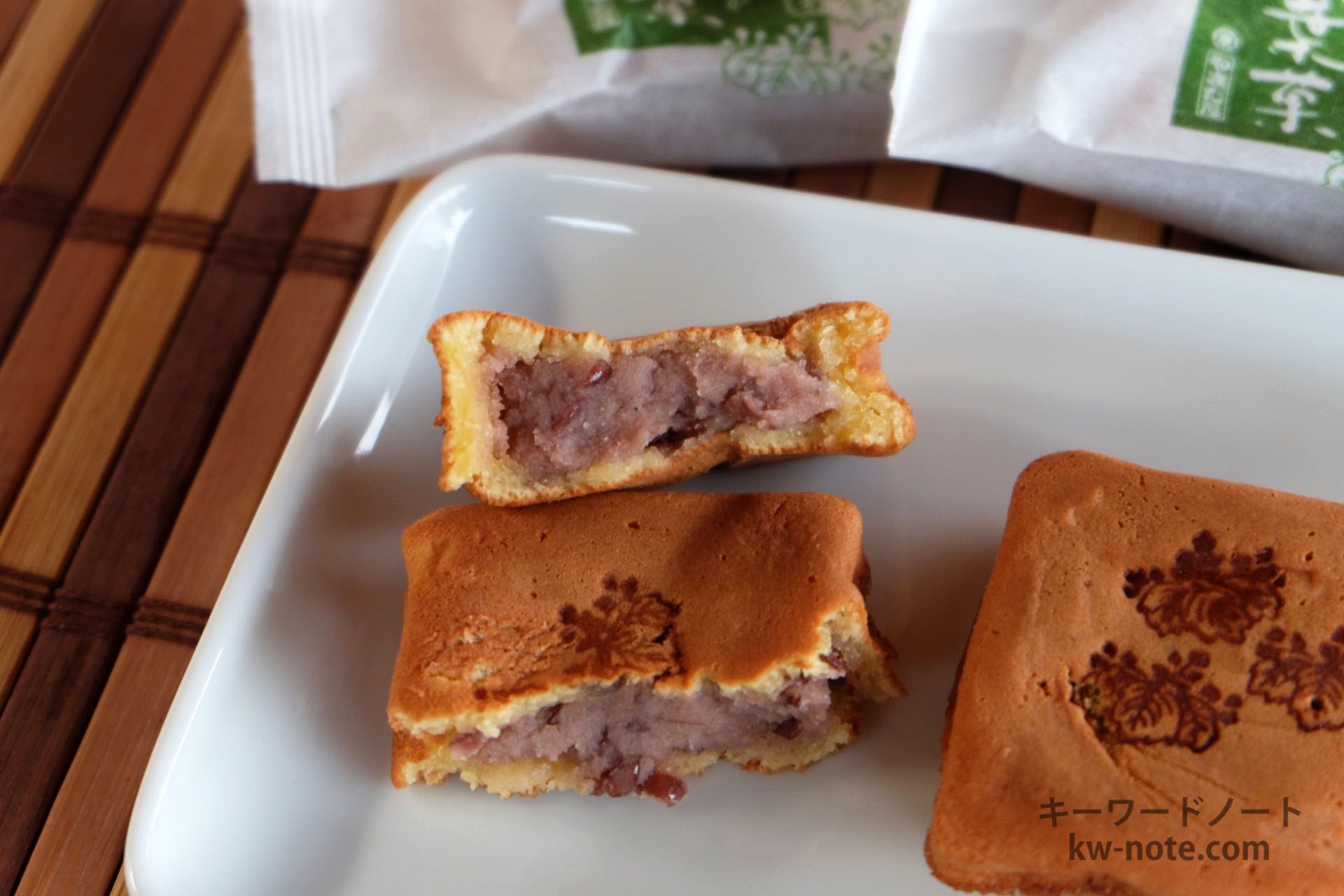 米粉を使ったモチっとした生地が特徴で、中は上品な甘さのつぶあんとこしあんをブレンドした合わせ餡が入っています。