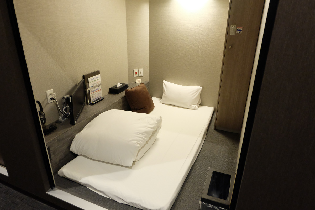 いくつかの部屋のタイプが用意されており、今回宿泊したのはCタイプでキャビン内は高さ200cm×奥行215cm×横幅140mとなっています。
