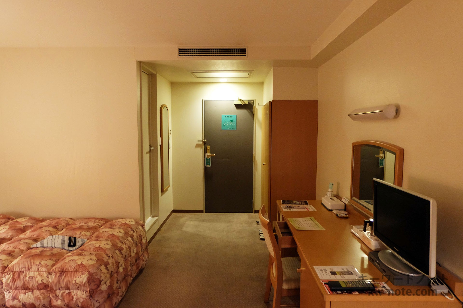 ビジネスホテルでいうと1人用としてはやや広めで、まったく窮屈さを感じる事無く宿泊できそうです。