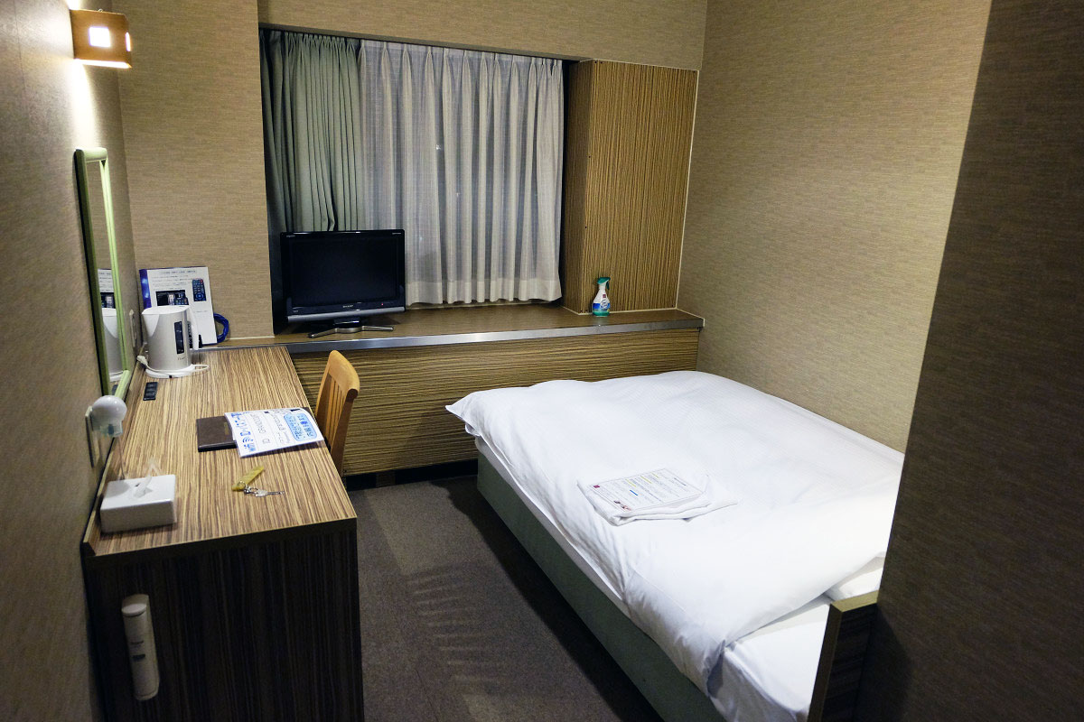 ホテルでいうとビジネスホテルの狭い部類で1人向けの部屋になります。