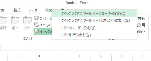 出現するメニューにある「クイック アクセス ツール バーのユーザ設定」をクリック。