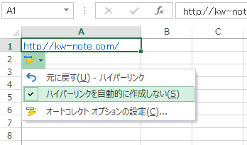 2007以前のバージョンは不明ですがそれ以降だとこの機能使えます。元のように自動ハイパーリンクする状態に戻したい場合は、ハイパーリンクになっているセルのドロップダウンから、今度は「ハイパーリンクを自動的に作成しない」のチェックを外します。