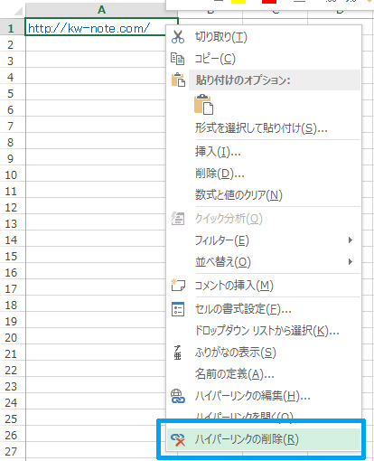 ただし、すでにハイパーリンクになってしまっている場所でアポストロフィを後から入力してもハイパーリンクのままですので、最初の入力時に書き込んでおく必要があります。この方法だと設定などもなくお手軽ですが、URLなどを打ち込む度に毎回アポストロフィを入力する必要があります。
