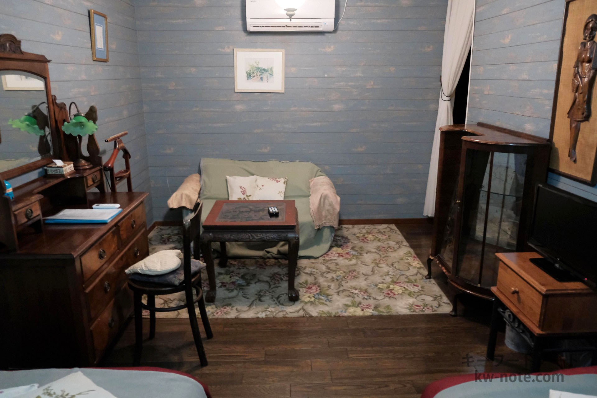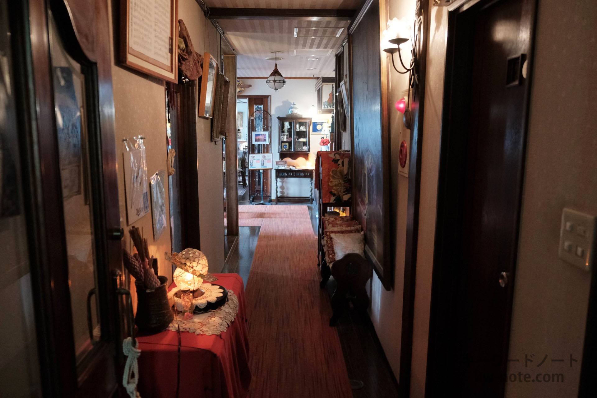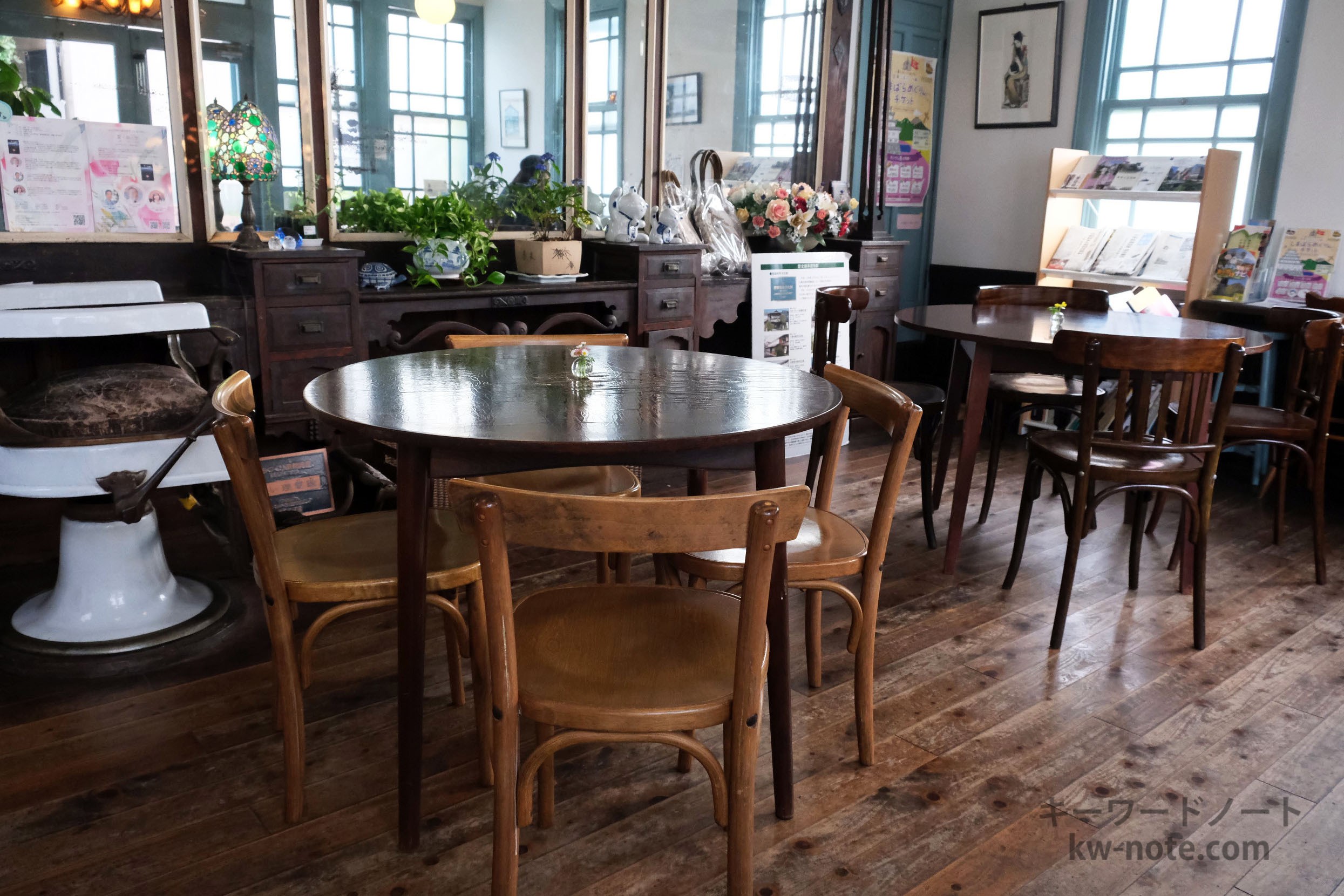 店名の通り、青い理容館だった建物をそのまま利用したレトロな雰囲気が特徴。