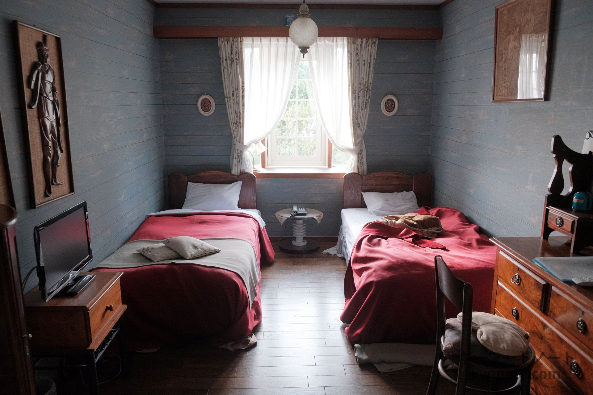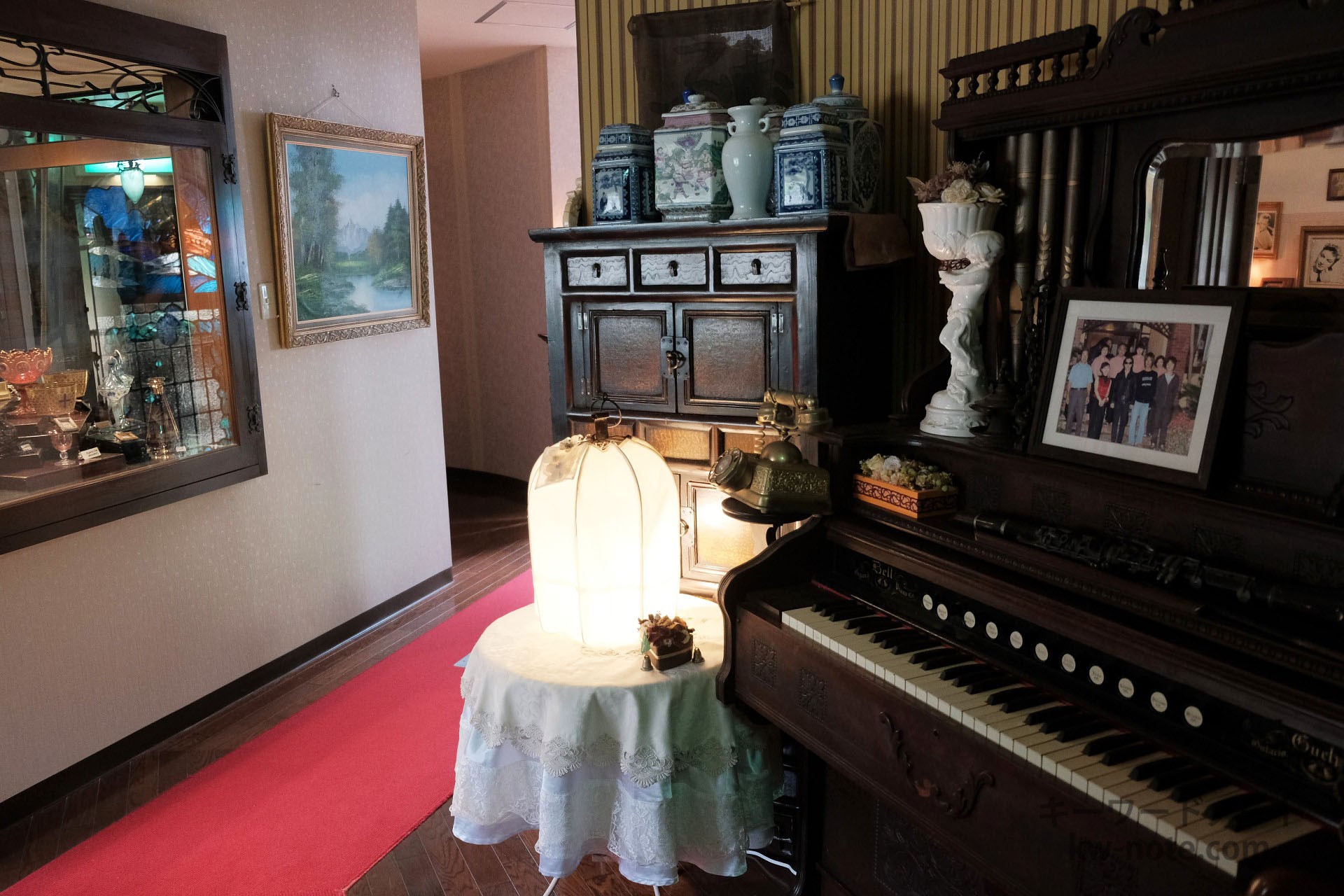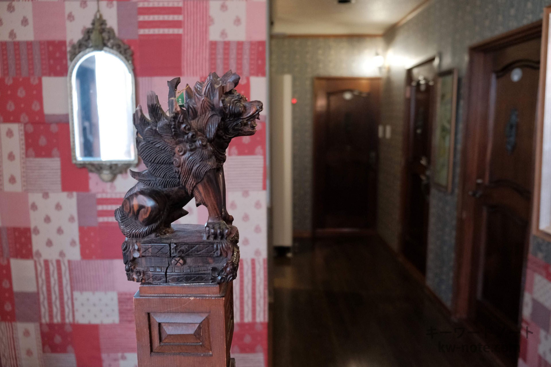 店名の通り、青い理容館だった建物をそのまま利用したレトロな雰囲気が特徴。