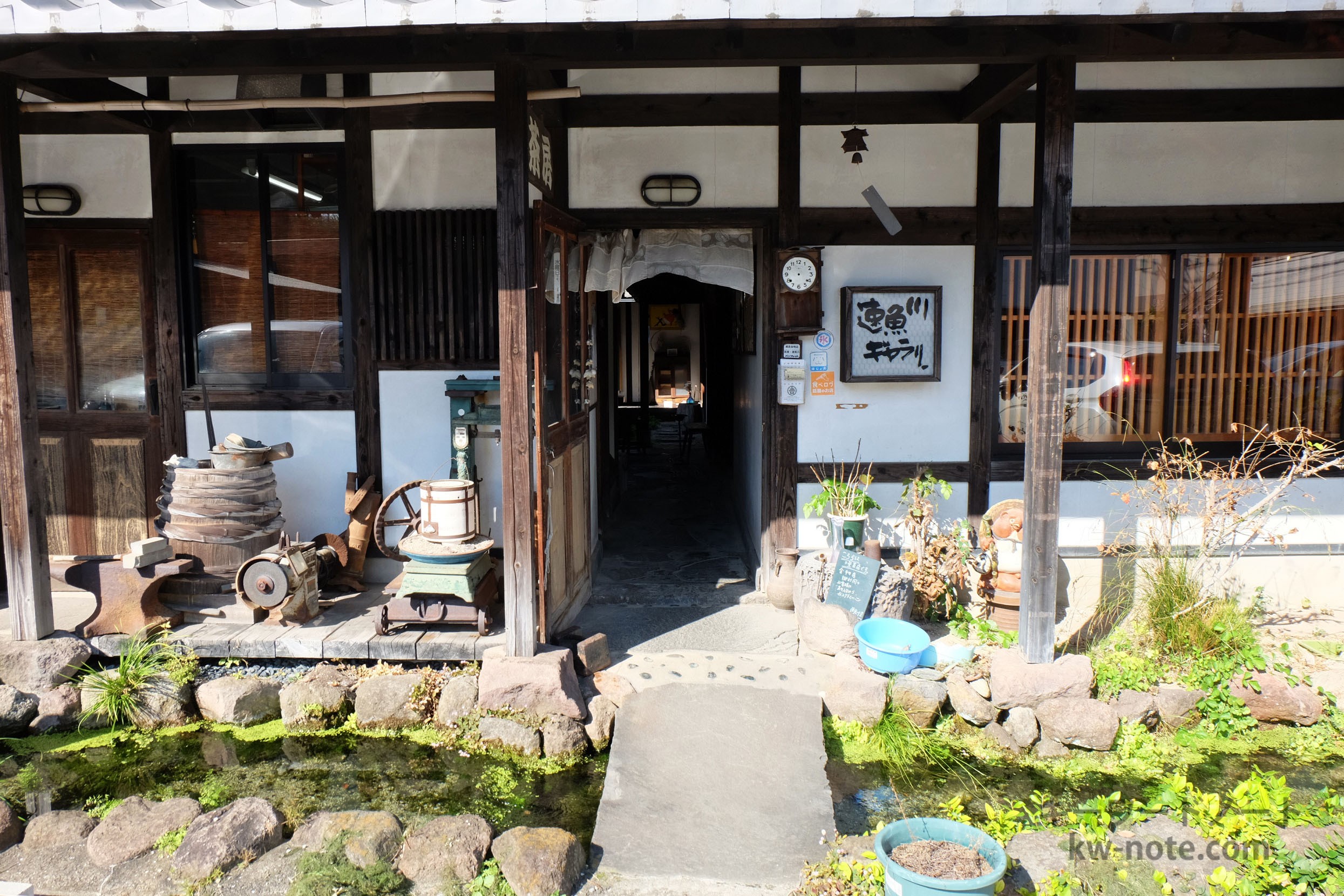 明治10年(1877年)創業の金物店「猪原金物店」(いのはらかなものてん)に併設されているお店で、ここの建物は江戸時代の万延2年(1861年)に建てられたという風情のある日本家屋。