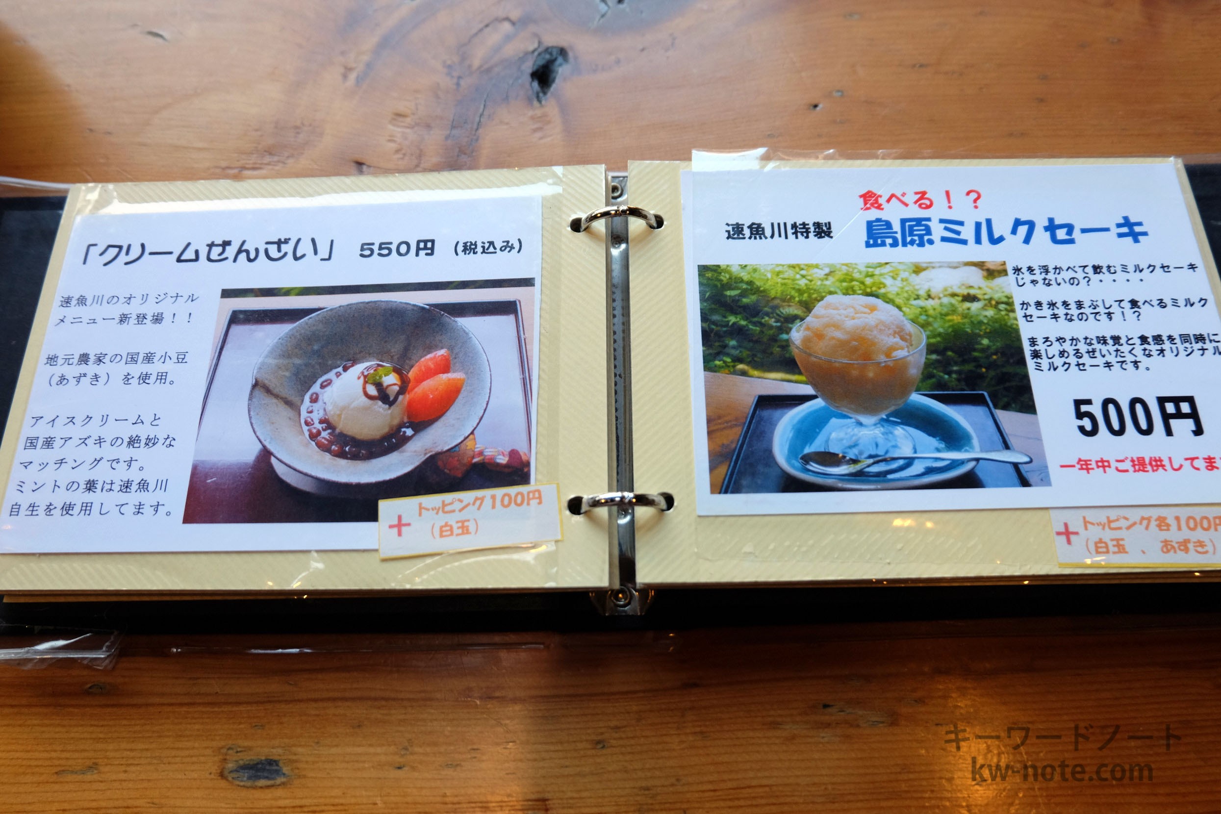 メニュー表(クリームぜんざい、ミルクセーキ)