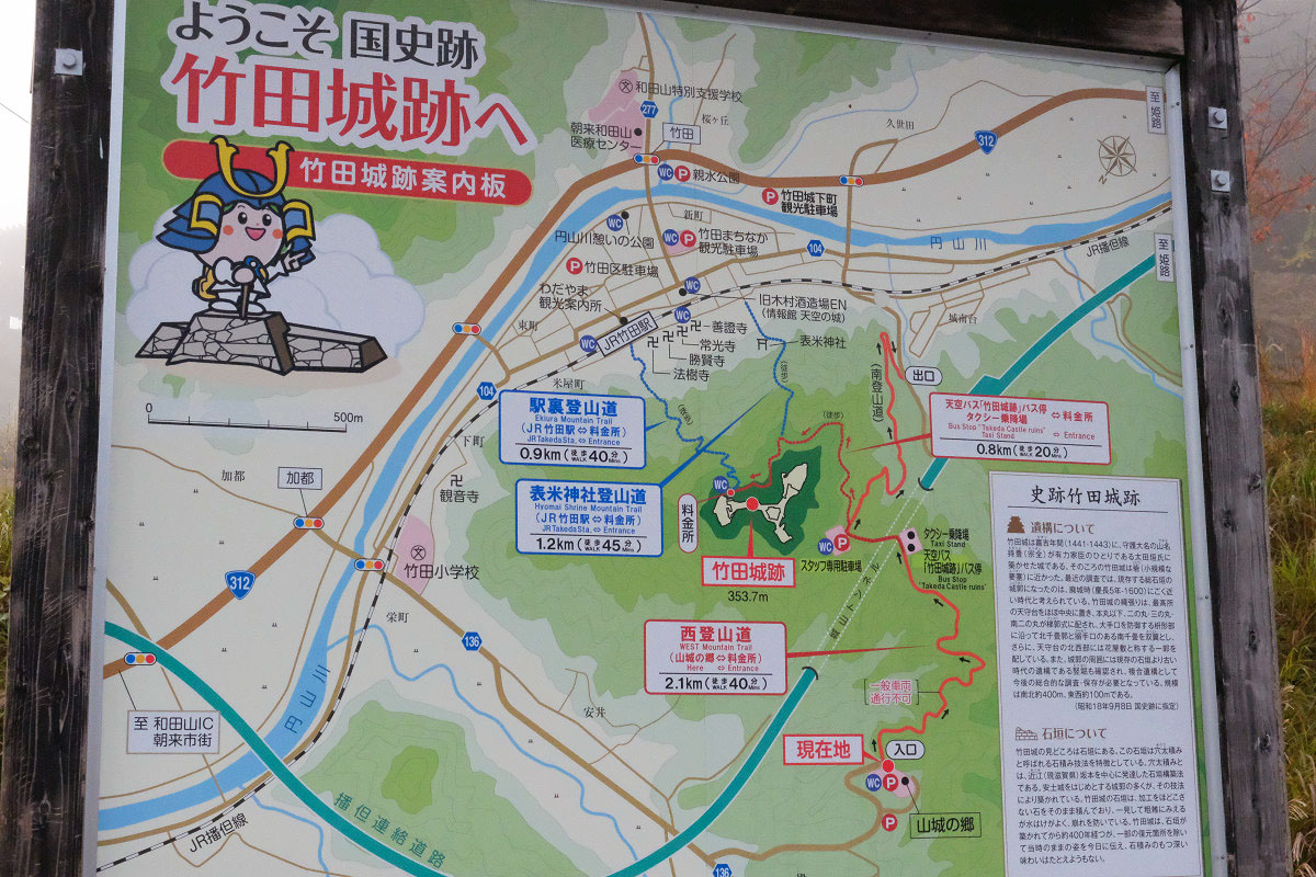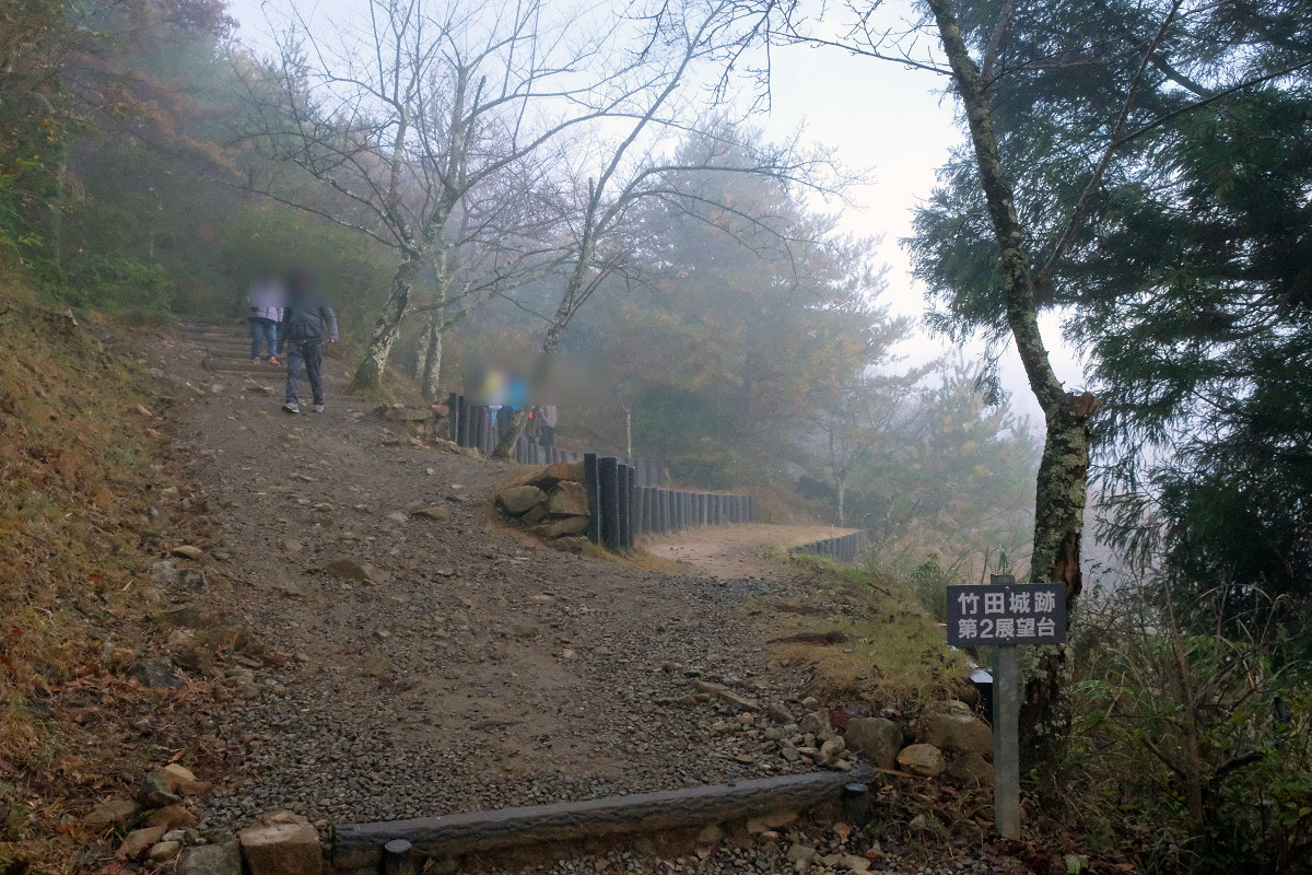 目安としては立雲峡駐車場から展望台までは徒歩約40分、竹田城へも40分位(中腹駐車場までのバスやタクシーだと時短可能)になります。