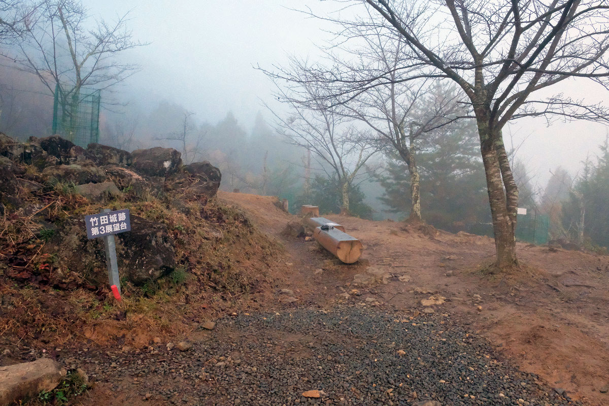 竹田城の紹介としてよく使われる、雲に浮かんでいるようなこの位置からの写真は、朝来山の中腹に位置する「立雲峡」からの風景です。