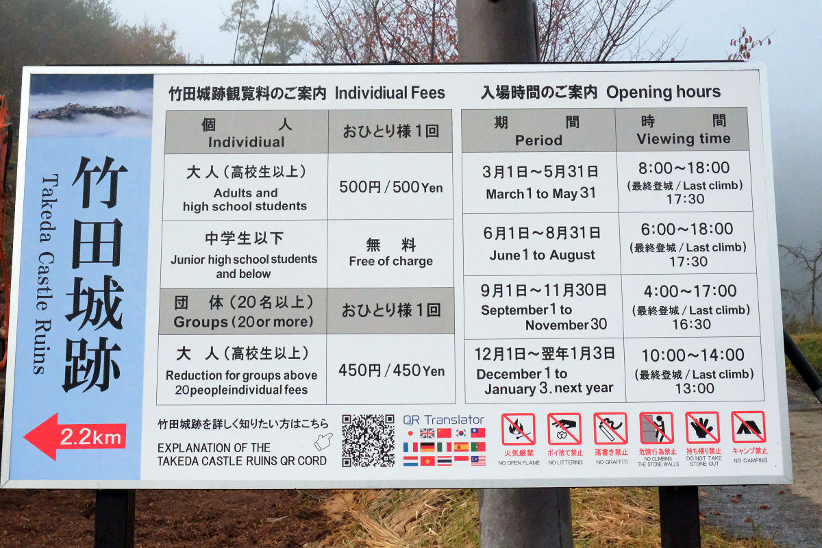 なお、竹田城は1年中入れるわけではなく閉山期間がありますので公式サイトにあるお知らせを確認してから行きましょう。