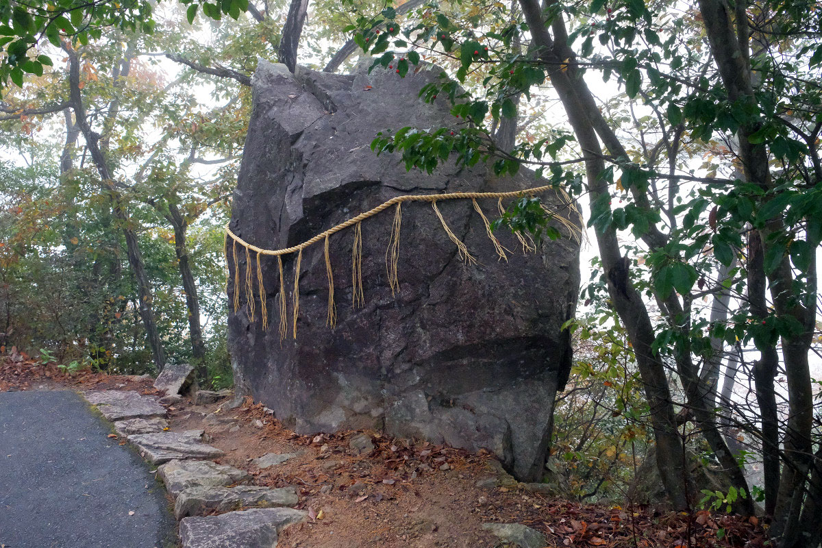2週間ちょっと前の10月31日に看板を立てて、岩にしめ縄を取り付けたとのこと。
