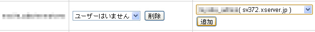 「MySQLの一覧」に進みさきほど作成したMySQLを見てみると「アクセス権所有ユーザ」の項目が「ユーザはいません」になっているので右側の欄にあるユーザーを選択して追加ボタンでユーザ追加します。