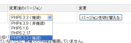 ここまできた時点でエックスサーバーの管理画面から「PHP Ver.切り替え」メニューがあるので最新のPHPに変更しておきましょう。