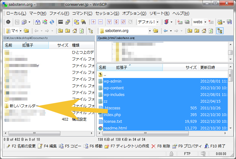 FTPで運営しているブログのファイルををすべて丸ごとダウンロードします。