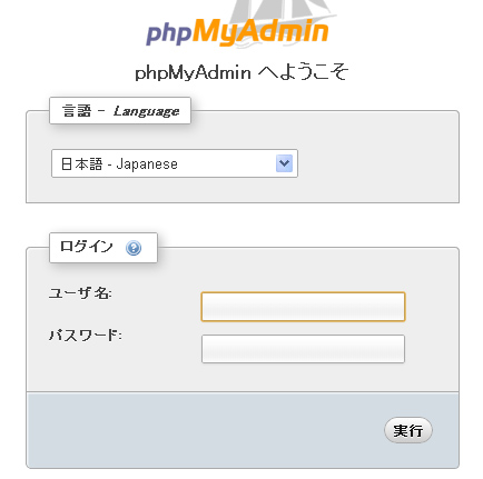 次にphpMyAdminのログイン画面になるので、ブログで使用しているMySQLのユーザ名とパスワードを入力してログインします。