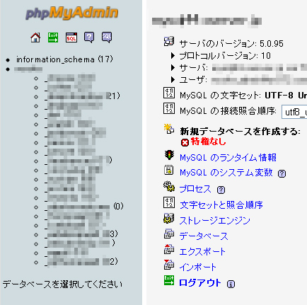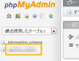 左メニューにあるワードプレスのデータが入っている方(「information_schema」でない方)をクリックします。