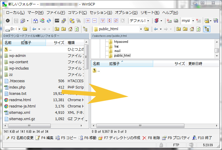 最初の作業でローカルにダウンロードしたファイルを、今度は新しいサーバーにアップロードする作業を行います。